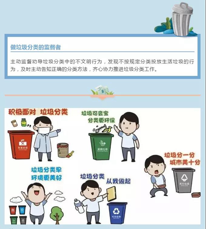 主動(dòng)監(jiān)督勸導(dǎo)垃圾分類中的不文明行為,發(fā)現(xiàn)不按規(guī)定分類投放生活垃圾的行為,及時(shí)主動(dòng)告知正確的分類方法,齊心協(xié)力推進(jìn)垃圾分類工作。