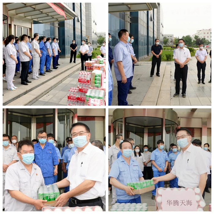 7月6日上午,陳宇一行來到集團(tuán)大興化工園區(qū),慰問園區(qū)內(nèi)華騰化工、華騰天海、試劑所、化工廠4家企業(yè)的干部職工。陳宇對(duì)一線職工冒酷暑、戰(zhàn)高溫,認(rèn)真負(fù)責(zé)的工作態(tài)度給予了高度肯定,對(duì)4家企業(yè)疫情防控、防汛、防暑降溫措施落實(shí)情況進(jìn)行了督促和檢查。