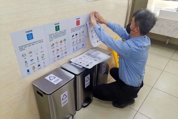 公司在持續(xù)開展宣傳的同時(shí),不斷更新垃圾分類設(shè)備設(shè)施,優(yōu)化桶站環(huán)境,及時(shí)更換已損壞的垃圾桶,確保桶站無異味,定期檢查桶站情況,做到無冒滿、無撒漏。公司還針對(duì)垃圾投放量較大的點(diǎn)位,及時(shí)增加分類垃圾桶,并在周邊加裝監(jiān)控設(shè)備,做好垃圾分類技防工作。