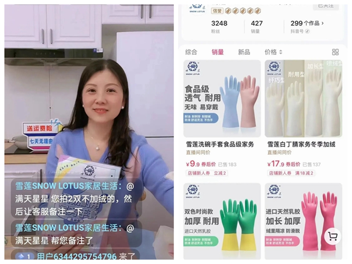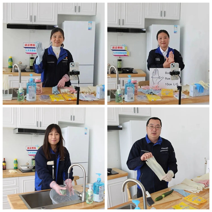 從綠幕直播間搬到了充滿生活氣息的“廚房”,在新的場(chǎng)景中,華騰橡塑公司手套產(chǎn)品的性能,更好、更直觀地展示給了消費(fèi)者。