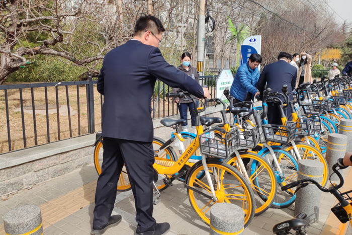 團(tuán)員青年們來到華騰新天地商場南門,將雜亂停放的共享單車擺放整齊,并引導(dǎo)前來停放共享單車的人們規(guī)范停放,優(yōu)化商場的周邊環(huán)境,避免商場周邊因為隨意停車造成的交通混亂和安全隱患。