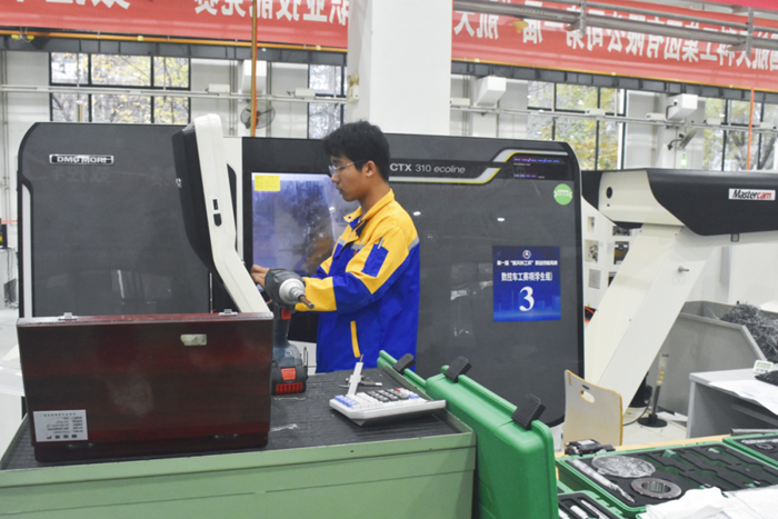 本次大賽共有來自航天科工系統(tǒng)所屬各級(jí)單位134名優(yōu)秀技能人才參加,同時(shí)邀請(qǐng)全國41所重點(diǎn)合作職業(yè)院校的130名優(yōu)秀學(xué)生參賽。技師學(xué)院選手參加了數(shù)控車工(高端數(shù)控編程與加工技術(shù))、加工中心操作調(diào)整工(五軸聯(lián)動(dòng)加工技術(shù))、增材制造設(shè)備操作員(數(shù)字化設(shè)計(jì)與增材制造)3個(gè)項(xiàng)目的比賽。