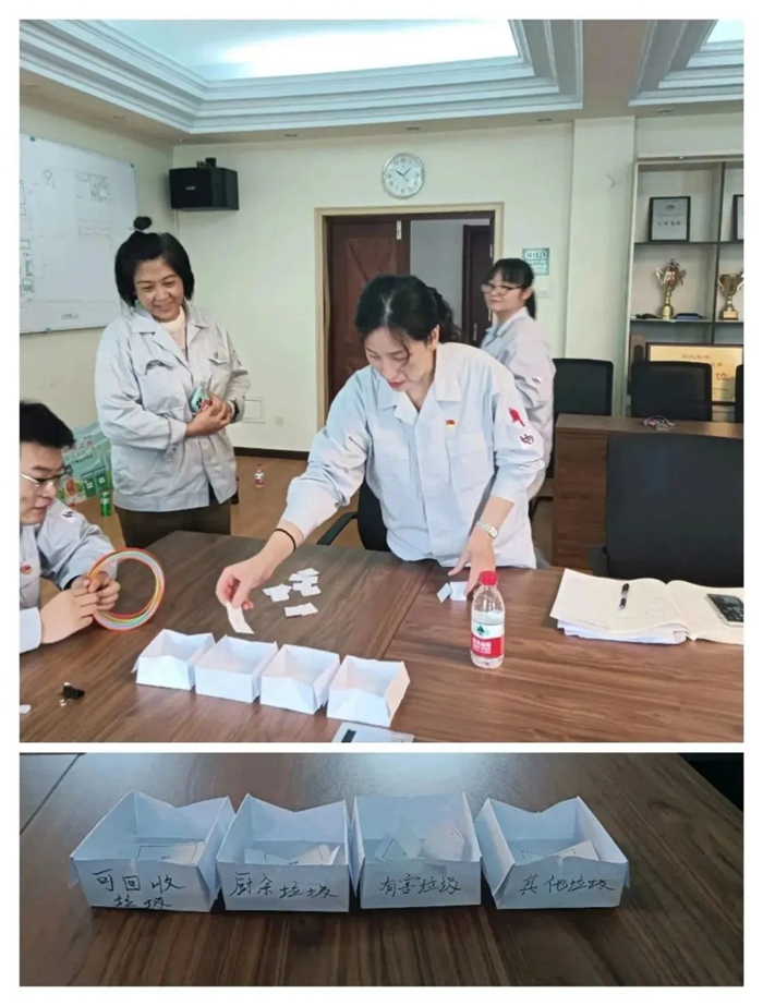 為將垃圾分類“持久戰(zhàn)”變?yōu)?ldquo;新風(fēng)尚”,基層黨支部精心組織,開展了以“垃圾分類”為主題的形式多樣的黨建活動(dòng)。第一黨支部利用小道具,以互動(dòng)的方式模擬垃圾分類和分投情景,或者將垃圾分類知識(shí)宣傳、普及與套圈小游戲相結(jié)合,達(dá)到了寓教于樂、融學(xué)于趣、化教于心的目的和效果?;顒?dòng)的開展,生動(dòng)有效地幫助干部職工鞏固垃圾分類知識(shí),提升了垃圾投放的正確率。