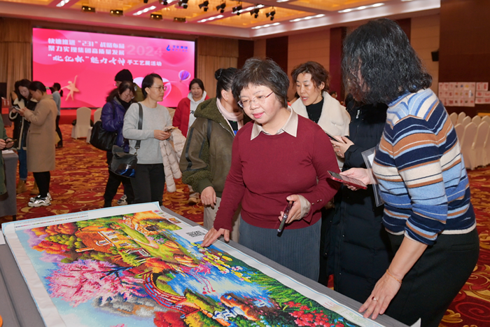 《人間煙火》舞蹈徐徐拉開活動序幕。來自集團(tuán)各單位的女職工們親手制作的手工藝作品,讓大家眼前一亮,精美的剪紙和手工藝編織、精湛的書法、奪目的繪畫、華麗的十字繡等185件手工藝作品,色彩艷麗、栩栩如生。