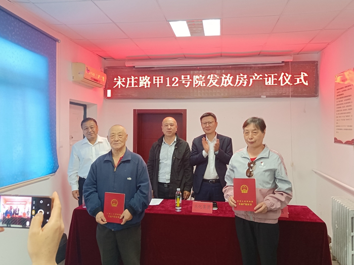 北京化工集團副總經(jīng)理李效軍以及所在社區(qū)負責人,北搪公司、化工廠相關(guān)領(lǐng)導共同見證房產(chǎn)證發(fā)放儀式,親手將房產(chǎn)證交到住戶手中。