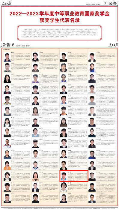 5月4日、5日,《人民日?qǐng)?bào)》專版刊登了100名研究生國(guó)家獎(jiǎng)學(xué)金獲獎(jiǎng)學(xué)生優(yōu)秀代表、100名本??粕鷩?guó)家獎(jiǎng)學(xué)金獲獎(jiǎng)學(xué)生優(yōu)秀代表、100名中等職業(yè)教育國(guó)家獎(jiǎng)學(xué)金獲獎(jiǎng)學(xué)生優(yōu)秀代表名錄。北京市工業(yè)技師學(xué)院環(huán)保與生物制藥系2021級(jí)環(huán)境保護(hù)與檢測(cè)專業(yè)學(xué)生王珂,榜上有名。