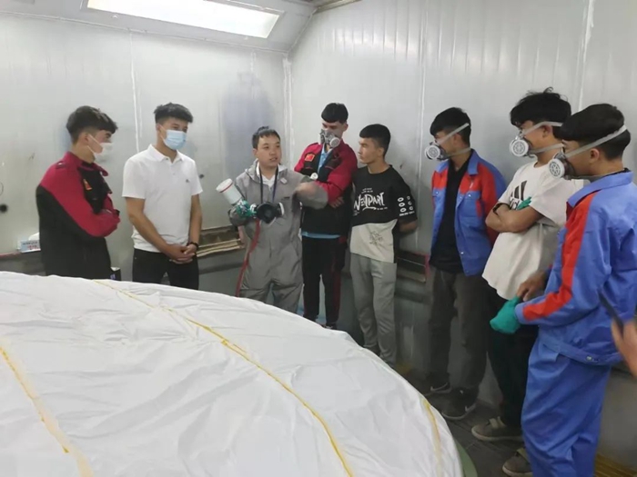 在充分了解到和田地區(qū)作為南疆重要的特色產(chǎn)業(yè)基地和交通樞紐,汽車保有量日益增長,汽車市場有非常大的發(fā)展空間這一信息后,高樂老師非常興奮。但他了解到,汽車鈑金與涂裝作為汽車市場中不可缺少的重要組成部分,在和田地區(qū)幾乎沒有專門開設(shè)汽車涂裝專業(yè)的職業(yè)院校。了解這一現(xiàn)實(shí)情況后,高樂老師感受到和田技師學(xué)院建成完善汽車工程系的強(qiáng)烈愿望。于是,高樂老師根據(jù)自己的專業(yè)特點(diǎn),以及和田技師學(xué)院的專業(yè)發(fā)展規(guī)劃,在與其他老師的共同努力下,順利完成了專業(yè)建設(shè)基礎(chǔ)工作,并制定了相應(yīng)方案,最終確保了和田技師學(xué)院“汽車鈑金與涂裝”專業(yè)獲批通過,這無疑為當(dāng)?shù)仄蕻a(chǎn)業(yè)發(fā)展構(gòu)建起人才“孵化器”。