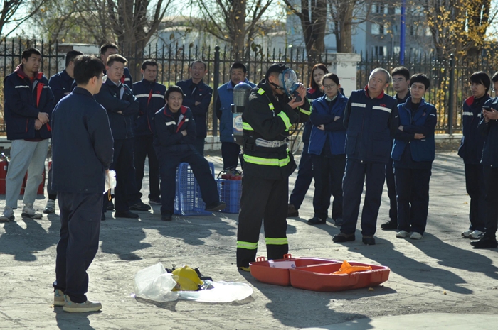 化研院首先進(jìn)行了模擬辦公樓起火疏散演練。培訓(xùn)伊始,消防站專業(yè)人員結(jié)合近年來(lái)典型的火災(zāi)案例,深入淺出地講解了火災(zāi)危害、報(bào)警程序、逃生注意事項(xiàng)等極具實(shí)用性的方式方法。