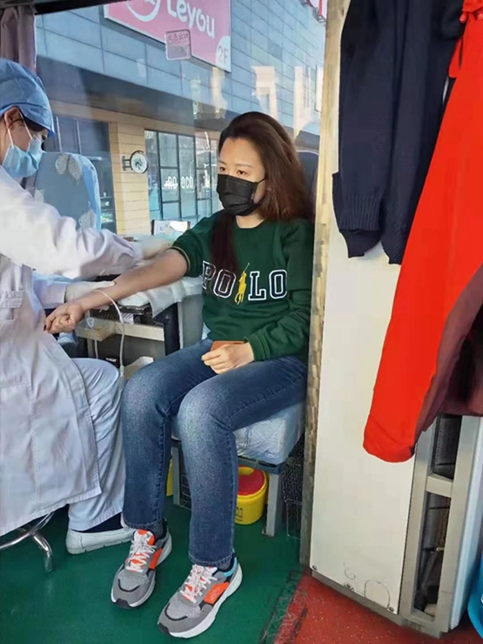 下圖為華騰橡塑侯嘉園同志在參加無(wú)償獻(xiàn)血。