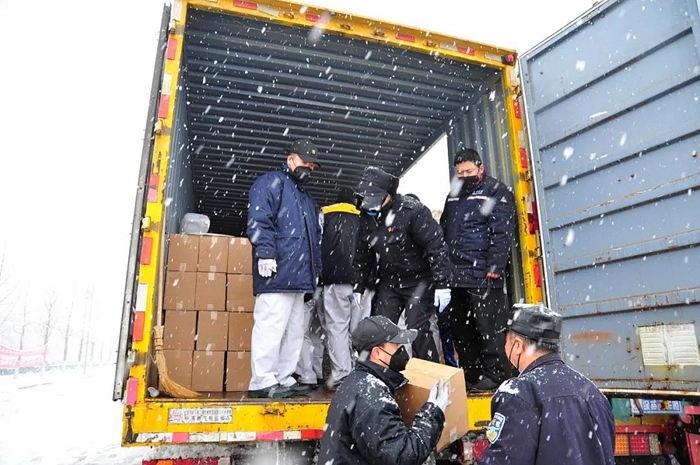 分裝、儲(chǔ)存、配送戰(zhàn)役打響后。為解決夜間裝卸照明問題,他現(xiàn)場(chǎng)指揮安裝臨時(shí)防爆照明設(shè)備,挑燈夜戰(zhàn)至晚上22時(shí);雪虐風(fēng)饕的裝卸現(xiàn)場(chǎng)他帶領(lǐng)職工清掃積雪、指揮搬運(yùn);安排食堂熬制姜糖水,為參戰(zhàn)的職工們驅(qū)寒保暖。有這樣的總經(jīng)理,職工們有使不完的勁兒,他們不畏風(fēng)雪,以滿滿的工作熱情,人工手抱肩抗,圓滿完成了分裝、儲(chǔ)存、配送任務(wù)。