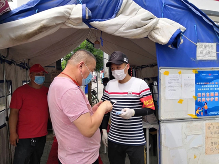 6月11日,北化集團(tuán)黨委召開慶祝建黨99周年暨下沉工作交流座談會,30多名載譽(yù)歸來、圓滿完成下沉社區(qū)(村)任務(wù)的同志受邀參會。當(dāng)同志們?nèi)猿两趧倮瓿杀本┦小⑹袊Y委黨委及集團(tuán)黨委交辦的這一重要任務(wù)的喜悅中時,北京市新冠肺炎疫情防控工作出現(xiàn)了新變化,北化集團(tuán)再次臨危受命,按上級要求在1天時間內(nèi)組建21人組成的下沉干部隊(duì)伍,按原下沉區(qū)、鎮(zhèn)及村(社區(qū)),6月15日一早到位。