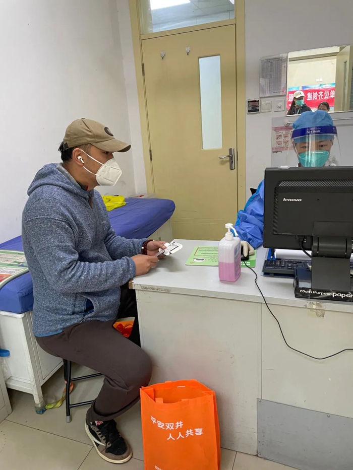 一次,在維持核酸檢測現(xiàn)場秩序的工作中,他看到一名獨自坐著電動輪椅的老大爺排在隊尾,并聽到大爺抱怨說隊伍太長想要回家時,他趕緊跑上前去說:“大爺您別急,我?guī)湍暾垈€快速通道,馬上咱們就能檢測完”。他推著大爺?shù)胶怂釞z測登記的位置說明事情緣由,臨時為大爺安排了快速通道進(jìn)行檢測,前后不到4分鐘就幫老大爺完成了核酸檢測。