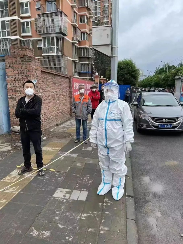 眼看天氣越來越熱,北京出現(xiàn)連續(xù)高溫,為更好地保護(hù)負(fù)責(zé)檢測的醫(yī)護(hù)和社工人員,社區(qū)決定下午一點停止檢測,可是這個舉動開始并不被居民們理解,往往到了一點之后還是有人陸陸續(xù)續(xù)前來測核酸。每每這個時候,我總會站到隊尾向大家解釋,告訴他們坐在隔離艙內(nèi)檢測人員的不容易,請大家換位思考給予諒解。雖然有時會面對許多質(zhì)疑的聲音,但我依舊會保持一份熱情、一份理解、一份關(guān)愛,因為我堅信,這身防護(hù)服帶給我的是榮耀、是真真切切為人民服務(wù)的標(biāo)識?,F(xiàn)在,居民們漸漸理解了工作人員的不易,我也感受到了居民們的通情達(dá)理和關(guān)愛。