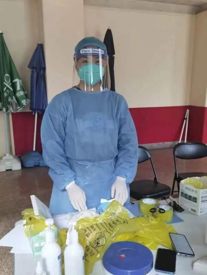 截至5月中旬,我已參加社區(qū)志愿服務(wù)8天,期間由于長時間身著防護(hù)服連續(xù)工作,身體出現(xiàn)了脫水狀況,但僅休息一日后,繼續(xù)奔赴社區(qū)防疫“戰(zhàn)場”。