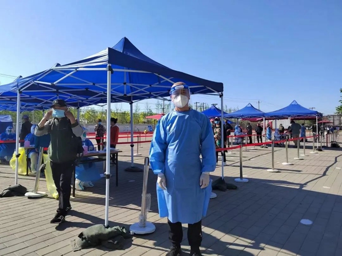 5月16日早上7點(diǎn)半, 我提前半小時(shí)來到通州區(qū)中倉社區(qū)報(bào)到,因?yàn)榈谝淮螀⑴c到核酸檢測(cè)工作,還比較忐忑,不知道自己能否干好。在與社區(qū)負(fù)責(zé)人對(duì)接后,進(jìn)行了簡(jiǎn)單的崗前培訓(xùn),跟隨著大家一起布置場(chǎng)地,在社區(qū)工作人員的耐心指導(dǎo)下,從開始時(shí)維持秩序、保障綠色通道這樣簡(jiǎn)單的工作,到后來我已經(jīng)能夠獨(dú)立完成身份信息采集、對(duì)所采集的樣品進(jìn)行開箱和封箱、幫助檢測(cè)替換下來的醫(yī)生進(jìn)行消毒,并在檢測(cè)完成后收集場(chǎng)地內(nèi)的物品,清理、消毒醫(yī)療垃圾等諸多工作,一系列工作我一氣呵成,他們都夸我是“檢測(cè)小能手”。