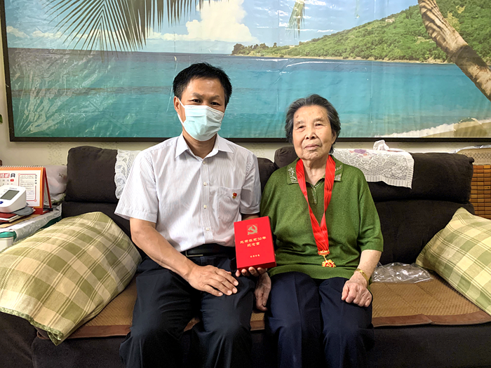 7月1日下午,在中國共產(chǎn)黨成立101周年之際,受北京化工集團黨委委托,黨委副書記吳瑞峰帶隊來到離休干部孫華云家中,向她頒發(fā)“光榮在黨50年”紀念章。孫華云同志今年已91歲高齡,1946年9月1日參加工作,1972年7月1日入黨,是集團原合纖廠工會干部。