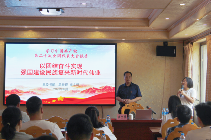 李磊還以本次主題教育專題黨課為契機(jī),為進(jìn)一步統(tǒng)一公司干部職工思想認(rèn)識(shí),凝聚實(shí)干擔(dān)當(dāng)促發(fā)展的堅(jiān)強(qiáng)力量進(jìn)行了形勢(shì)任務(wù)教育,并向黨員同志和干部職工介紹了公司發(fā)展成果和下一步工作計(jì)劃。