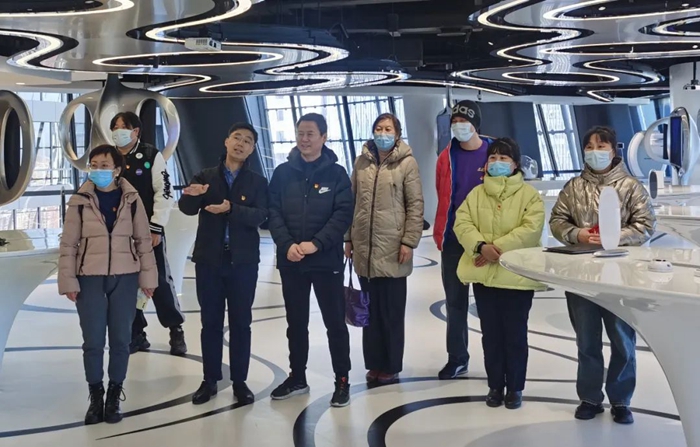 麗澤商務區(qū)以智慧設備設施等多個智慧應用為業(yè)務支撐體系,形成多種場景一體式智慧服務輸出模式,全面提升用戶的服務體驗。此次參觀的麗澤SOHO,是一座商業(yè)辦公綜合體,其中位于頂層的麗澤云客廳,于2023年6月列為主題教育教學點。