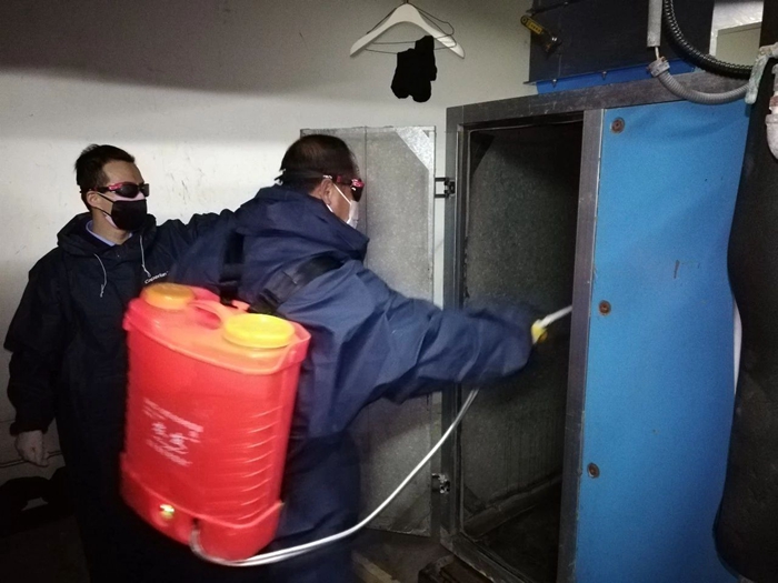 在大廈大堂,公司黨總支書(shū)記、總經(jīng)理、副總經(jīng)理、運(yùn)營(yíng)總監(jiān)現(xiàn)場(chǎng)協(xié)調(diào)指導(dǎo),及時(shí)與公司辦公室溝通物資供應(yīng),事業(yè)部班子成員現(xiàn)場(chǎng)指揮調(diào)度,中控操作、樓內(nèi)保潔消毒、空調(diào)消毒、客戶(hù)服務(wù)等各方面工作緊張有序推進(jìn)。