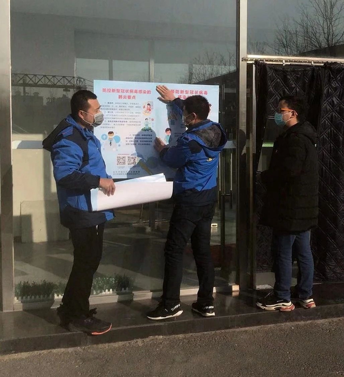 2月3日,北搪商務(wù)大廈商務(wù)中心的全體員工,在負(fù)責(zé)人朱娜的帶領(lǐng)下,檢查并協(xié)助物業(yè)管理公司對(duì)辦公區(qū)域進(jìn)行消毒和清潔,對(duì)12層以下的客戶(hù)進(jìn)行摸底排查,挨家挨戶(hù)進(jìn)行在崗人數(shù)調(diào)查并記錄上報(bào)事業(yè)部,在暫時(shí)無(wú)人辦公的客戶(hù)門(mén)上張貼關(guān)于做好疫情防控的緊急通知,同時(shí)以電話(huà)或微信方式,將通知有關(guān)內(nèi)容傳達(dá)給客戶(hù),提示加強(qiáng)對(duì)去往疫情高發(fā)地區(qū)及接觸過(guò)疫情高發(fā)區(qū)的員工的教育,做好相應(yīng)隔離防護(hù)措施,隨時(shí)溝通各自單位的防疫工作的最新動(dòng)態(tài)。