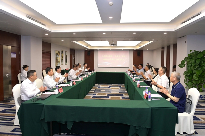 7月15日,北京化工集團(tuán)與北京排水集團(tuán)簽署戰(zhàn)略合作協(xié)議?;ぜ瘓F(tuán)黨委書記、董事長陳宇,黨委副書記、董事、總經(jīng)理?xiàng)钚褫x,黨委常委、副總經(jīng)理孫紹剛,副總經(jīng)理張榮寰;排水集團(tuán)黨委書記、董事長張建新,黨委副書記、職工董事、工會主席王蘭,黨委委員、副總經(jīng)理張志淵出席簽約儀式。