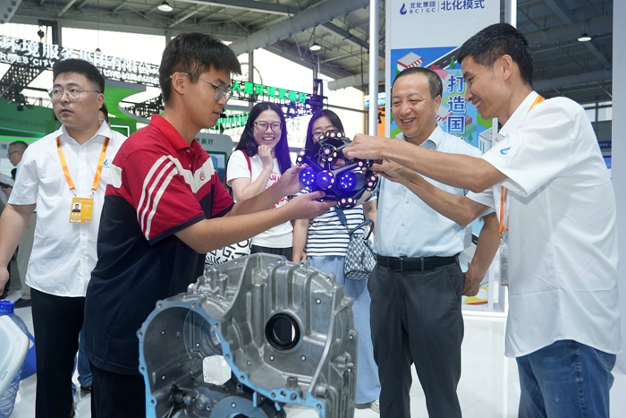 致力于職業(yè)技能人才培養(yǎng)的技師學院,在互動中呈現(xiàn)世界技能大賽金牌項目——機電一體化的卓越成果,學院以人機互聯(lián)的3D掃描和工業(yè)機器人吸引了大批參觀者駐足,讓觀眾近距離感受產教融合的創(chuàng)新實踐和“化工+教育”的協(xié)同價值。