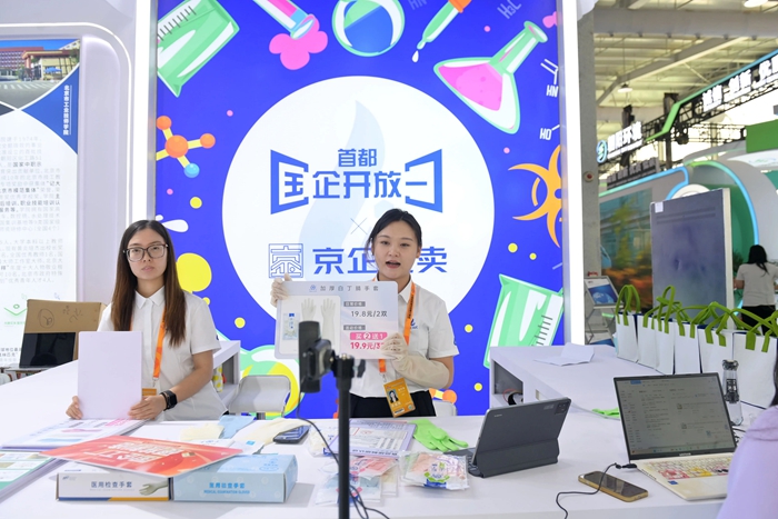 與“安靜”的產品展示形成鮮明對比,“北化體驗”和“北化市集”展區(qū)則以人們喜聞樂見的互動體驗、直播帶貨,展示著北京化工的別樣風采。