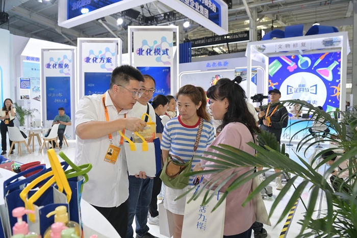 展會期間,北京化工集團外部董事、領導班子成員和高管人員專程來到集團展位,為宣傳展示集團發(fā)展成果站腳助威,集團黨委書記、董事長陳宇,黨委副書記、董事、總經(jīng)理楊旭輝不時與技術人員交流,了解產品和服務市場拓展情況;陳宇、楊旭輝還來到北化體驗、“北化市集”展區(qū),詢問有關職業(yè)教育、文物修復,以及直播帶貨銷售情況,鼓勵大家發(fā)揚青年人的拼勁、闖勁,在“三個北化”建設引領下為集團發(fā)展做出新的更大貢獻。