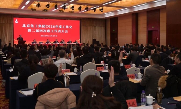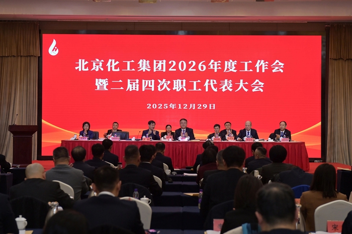 12月29日,北京化工集團(tuán)召開2026年度工作會暨二屆四次職工代表大會,黨委書記、董事長陳宇以《堅持“231”戰(zhàn)略布局和“三個北化”建設(shè)不動搖 奮力書寫集團(tuán)公司“十五五”時期高質(zhì)量發(fā)展的嶄新篇章》為題作總結(jié)講話,黨委副書記、董事、總經(jīng)理楊旭輝以《砥礪收官“十四五” 擘畫啟航“十五五”——為打造國內(nèi)領(lǐng)先國際知名的創(chuàng)新型企業(yè)集團(tuán)而奮斗》為題作工作報告,黨委常委、副總經(jīng)理韓寶海主持會議。