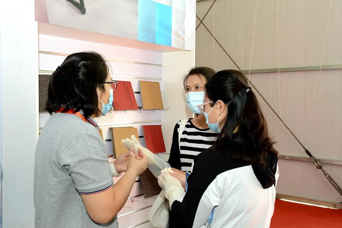 展會期間,來展臺參觀洽談的客戶絡繹不絕,據初步統(tǒng)計,已簽訂產品意向訂單包括:健身房運動板、籃球場膠板預計5000平米。有的客戶還表示將與公司進一步開展商務合作,共謀發(fā)展。