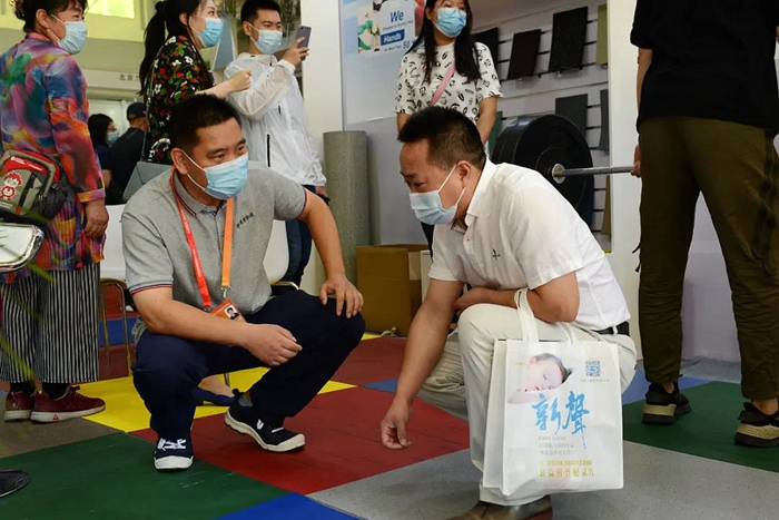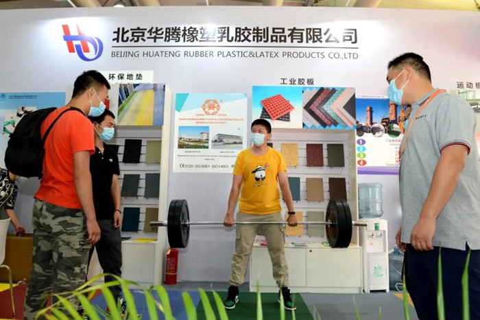 展會上,華騰橡塑展出了滿足不同需求的三大系列產品:一是適用于學校、體育場館的預制型橡膠板跑道;二是適用于健身房、活動室的橡膠運動地板系列及杠鈴系列;三是適用于醫(yī)院、機場、辦公場所的環(huán)保橡膠地墊系列。