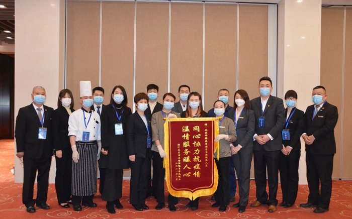 后來了解到,這面錦旗是隔離人員自發(fā)制作的,他們親眼看到酒店人員每日辛苦的付出,親身感受著服務(wù)人員提供的無微不至的關(guān)心照顧,那種因隔離產(chǎn)生的緊張、不適,甚至恐懼都漸漸地被貼心和暖心的服務(wù)化解了。由于隔離人員本就居住在一個街道小區(qū),他們有自己的社區(qū)群,所以他們自發(fā)地在群里組織購買了這面飽含深情的錦旗,以快遞的方式郵寄到酒店。