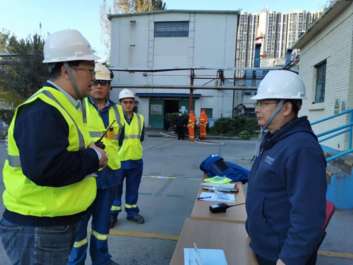 演練人員全部是一線人員。崗位人員發(fā)現(xiàn)氫氣瓶“突發(fā)火情”后,緊急發(fā)出警報(bào),設(shè)置隔離警戒,現(xiàn)場(chǎng)排查,進(jìn)行初級(jí)處置,隨后現(xiàn)場(chǎng)指揮系統(tǒng)啟動(dòng),專業(yè)處置、疏散撤離、與消防等外部支援力量的合作等一系列安全措施有序展開(kāi),操作流暢、協(xié)調(diào)到位、環(huán)節(jié)緊湊。
