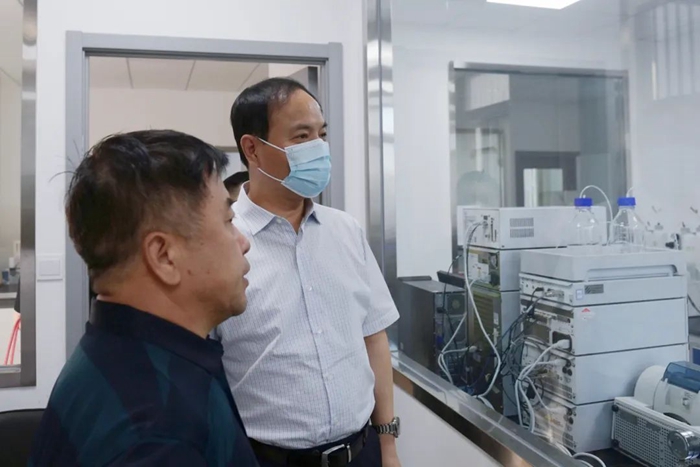 王國華來到化研院科方孵化器辦公樓,深入到實(shí)驗(yàn)室、檢測室現(xiàn)場,全面檢查、詳細(xì)詢問工作人員安全生產(chǎn)、疫情防控各項(xiàng)措施落實(shí)情況。