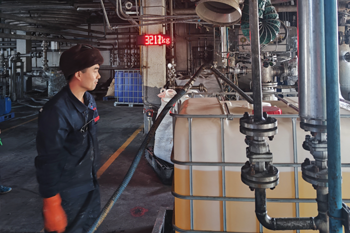 就在大年初六凌晨4時(shí)許,當(dāng)班的黨員同志們按時(shí)將環(huán)保試劑配送到北京固廢物流有限公司消納站,按照工作安排,當(dāng)天要把1噸的除磷劑輸送到反應(yīng)罐中,他們熟練地進(jìn)行插管、接泵、架線等各項(xiàng)工作。同時(shí),他們還要把500公斤的檸檬酸固體送到消納站倉(cāng)庫(kù),以保證節(jié)日期間正常之需。