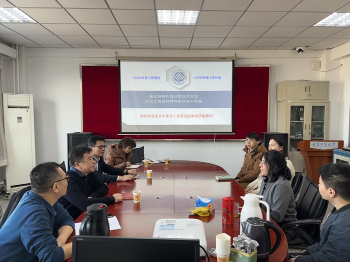 日前,在集團(tuán)專業(yè)部室指導(dǎo)下,化研院黨總支書記、董事長楊傳忠?guī)ш?duì)專程來到北京工商大學(xué),對由該大學(xué)負(fù)責(zé)的化研院“揭榜掛帥”項(xiàng)目——“兼具導(dǎo)熱和阻燃功能的聚酯改性工程塑料材料的研究和制備”開展期中檢查。