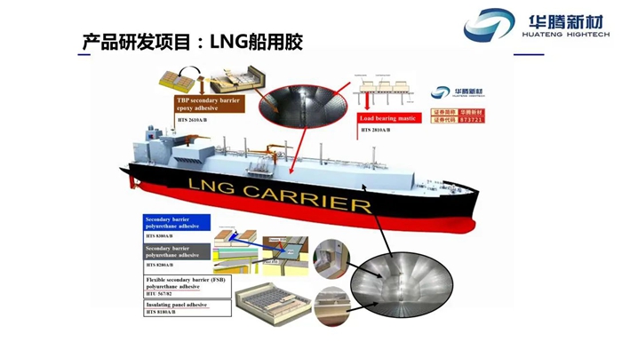 “十四五”期間,華騰新材在深耕傳統(tǒng)膠粘劑市場基礎(chǔ)上,直面LNG船用膠這一“卡脖子”技術(shù)難題,以高端新材料“破題”為抓手,以產(chǎn)業(yè)迭代為目標(biāo),將LNG船用膠作為解決自主替代難題,大膽突破,開拓新市場的重點(diǎn)科研項(xiàng)目。2023年,經(jīng)過科研人員多年全力攻關(guān),華騰新材LNG船用膠產(chǎn)品取得重要突破,其中絕緣板用聚氨酯膠粘劑成功通過法國GTT公司認(rèn)證,并順利投入商業(yè)化生產(chǎn)。
