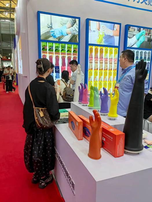 通過現(xiàn)場試用體驗(yàn)、功能演示等互動環(huán)節(jié),瑞京公司人員向觀眾直觀呈現(xiàn)出產(chǎn)品的舒適性和防護(hù)性能,吸引了眾多客商駐足咨詢。公司產(chǎn)品獲得現(xiàn)場觀眾的一致好評,同時(shí)進(jìn)一步鞏固了瑞京公司在乳膠手套領(lǐng)域的品牌影響力。
