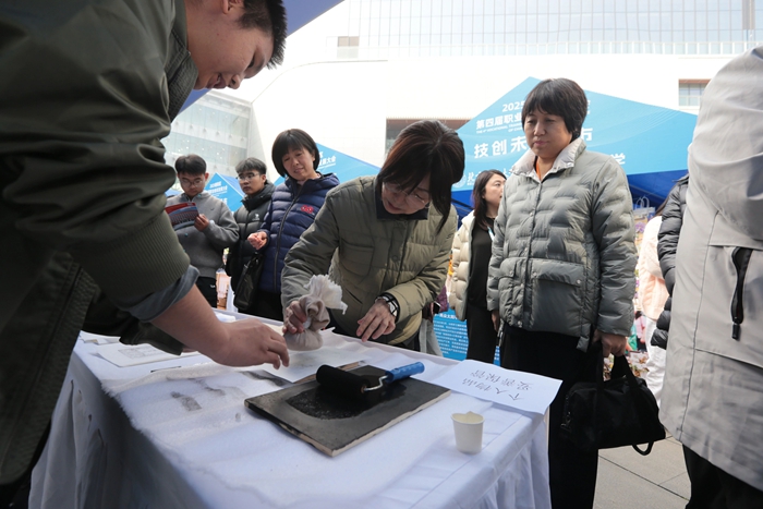 技師學院專門組織相關(guān)專業(yè)師生展演的文物修復(fù)體驗項目受到廣泛關(guān)注。高超的專業(yè)技能、熱情的服務(wù)、精彩的現(xiàn)場講解與操作體驗,贏得眾多市民駐足觀看,成為一個亮眼的“打卡點”。與會嘉賓也被吸引,紛紛蒞臨技師學院展位,親自體驗現(xiàn)場展示項目,詳細了解技師學院相關(guān)辦學成果,并給予高度評價。